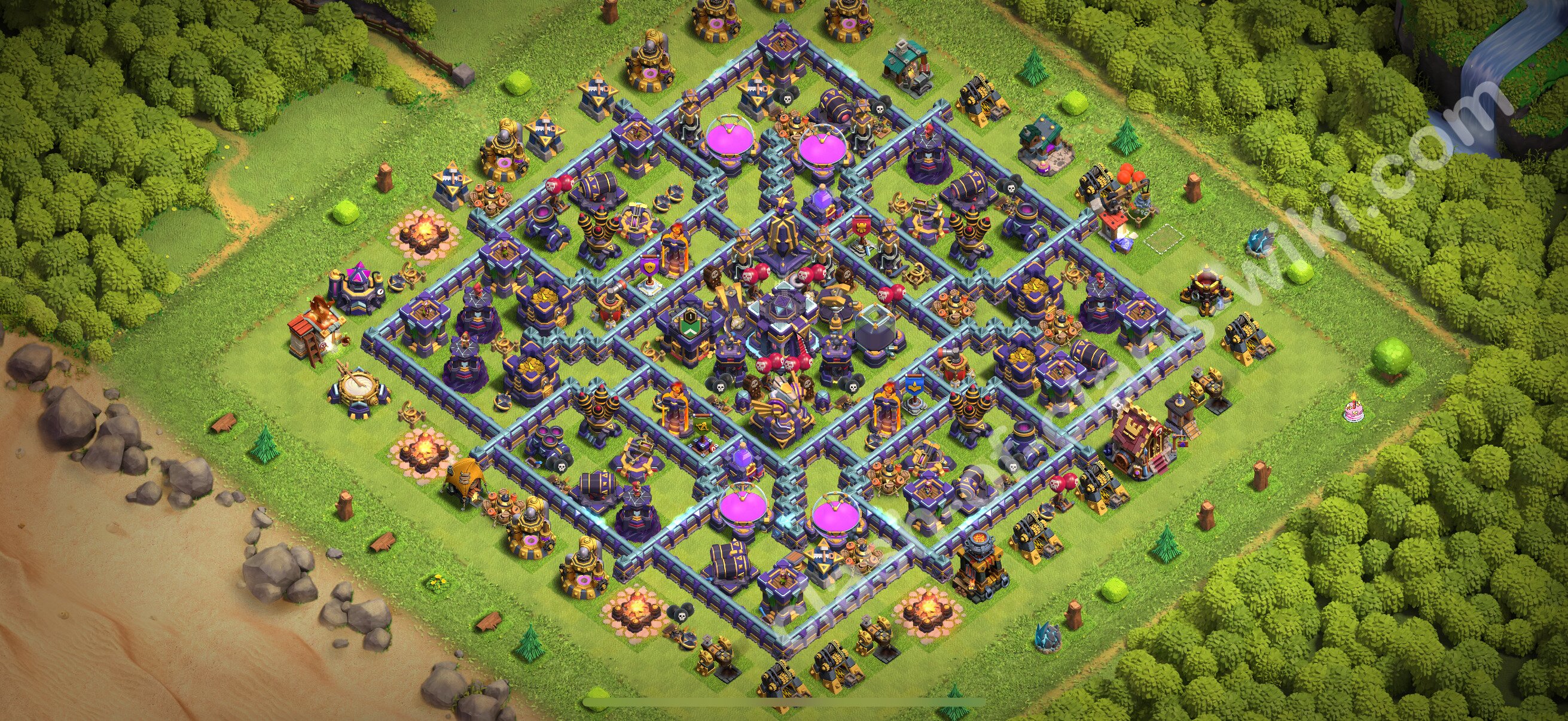 L'opzione efficace di disposizione villaggio per trofei (è necessario non permettere all'avversario di distruggere il Municipio per non perdere trofei) il Municipio di 15.