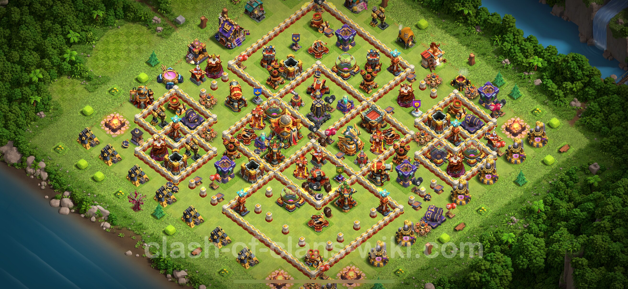 Efficient base plan (layout / design) variant for defense (to collect trophies) Town Hall 16 / TH 16.