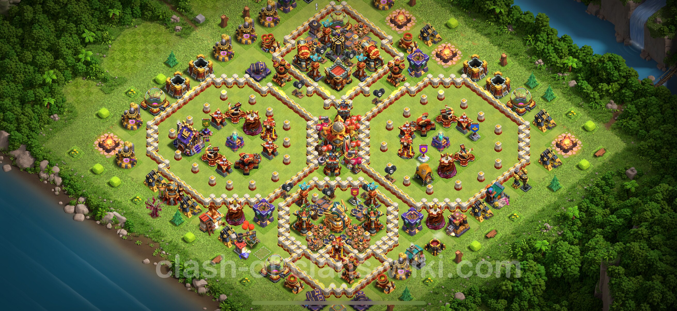 Efficient base plan (layout / design) variant for defense (to collect trophies) Town Hall 16 / TH 16.