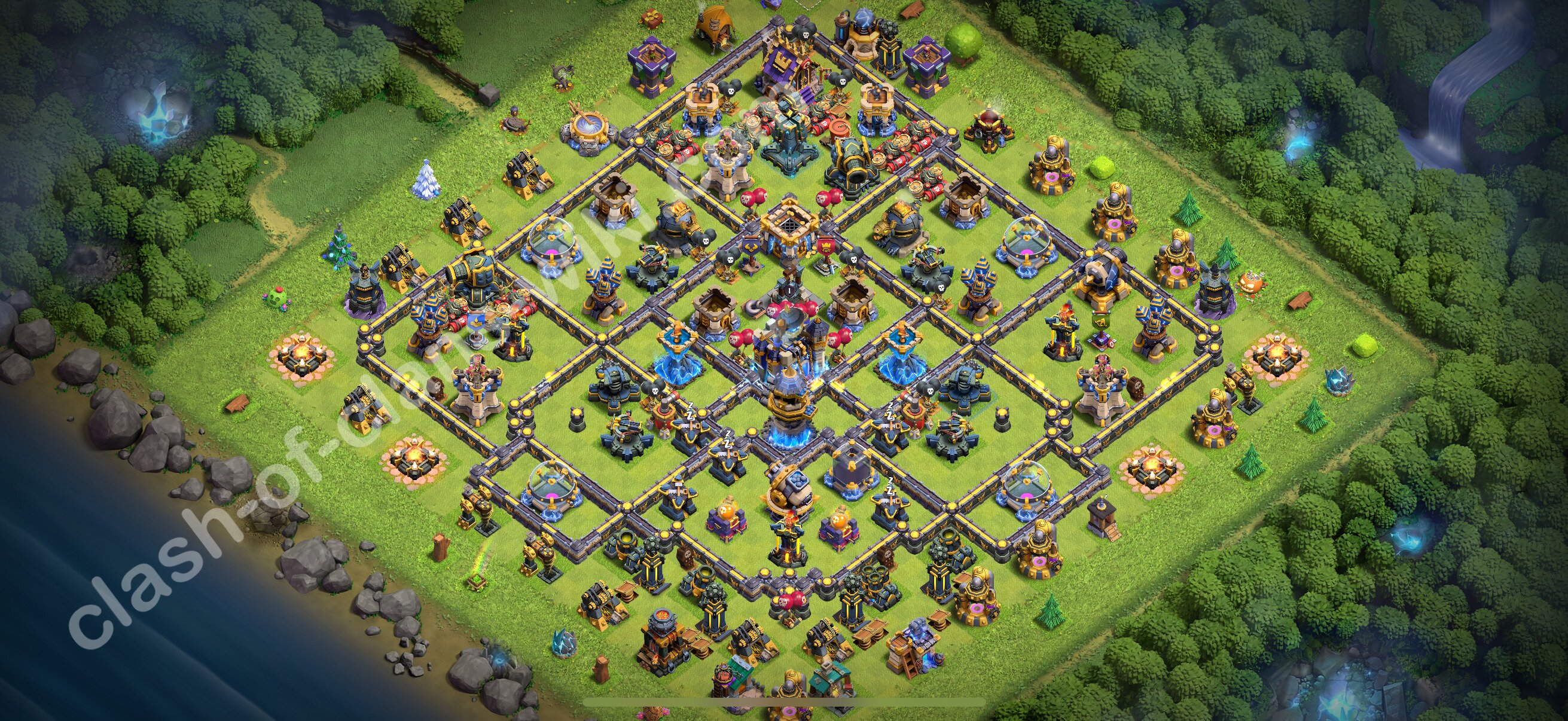 Efficient base plan (layout / design) variant for defense (to collect trophies) Town Hall 18 / TH 18.