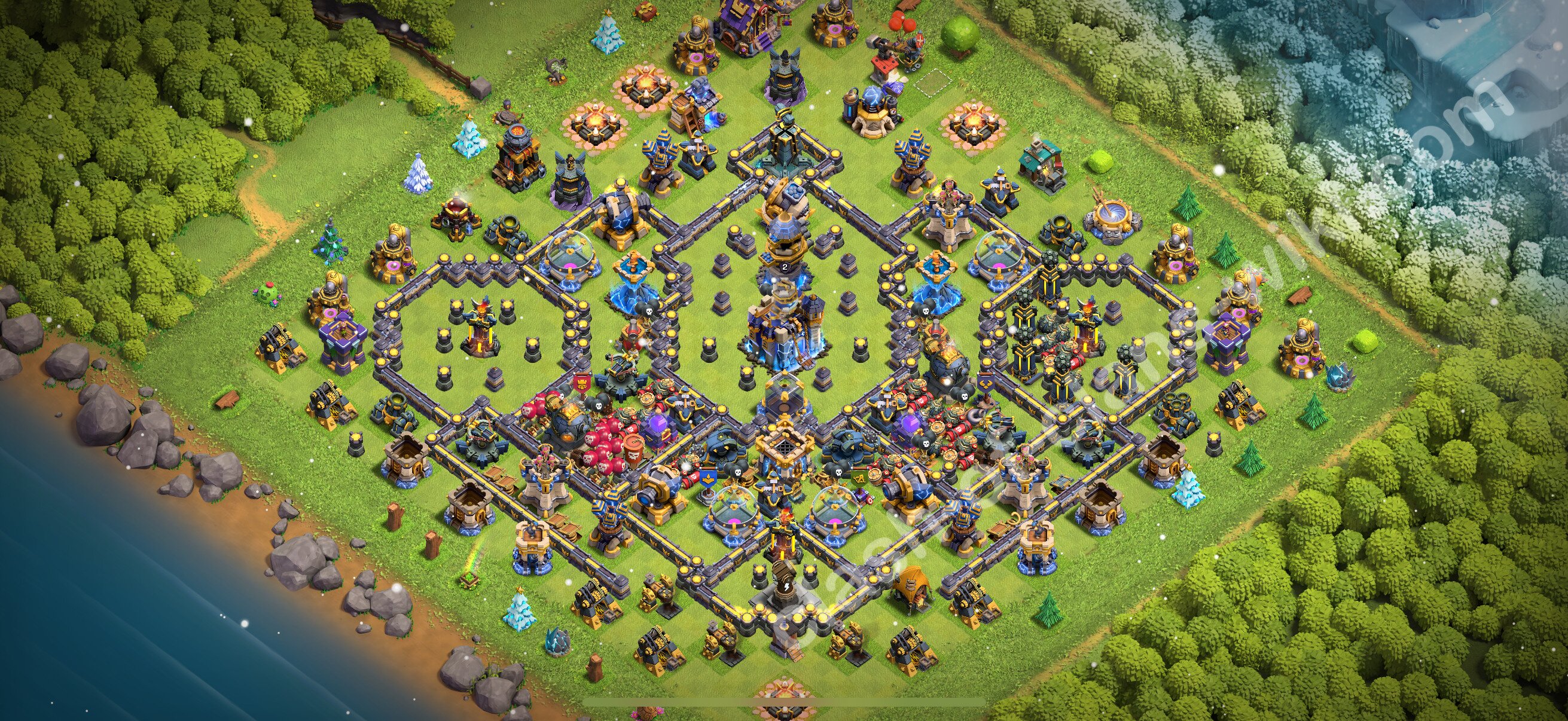 Efficient base plan (layout / design) variant for defense (to collect trophies) Town Hall 18 / TH 18.