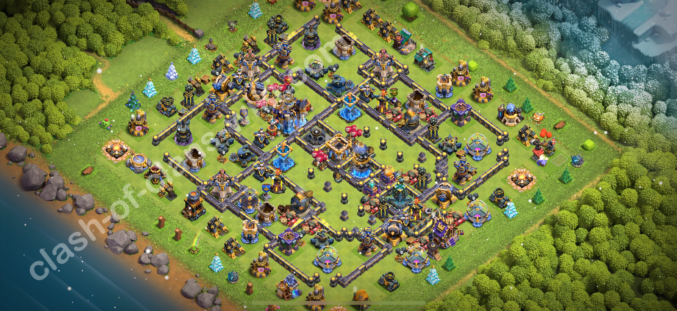 Efficient base plan (layout / design) variant for defense (to collect trophies) Town Hall 18 / TH 18.