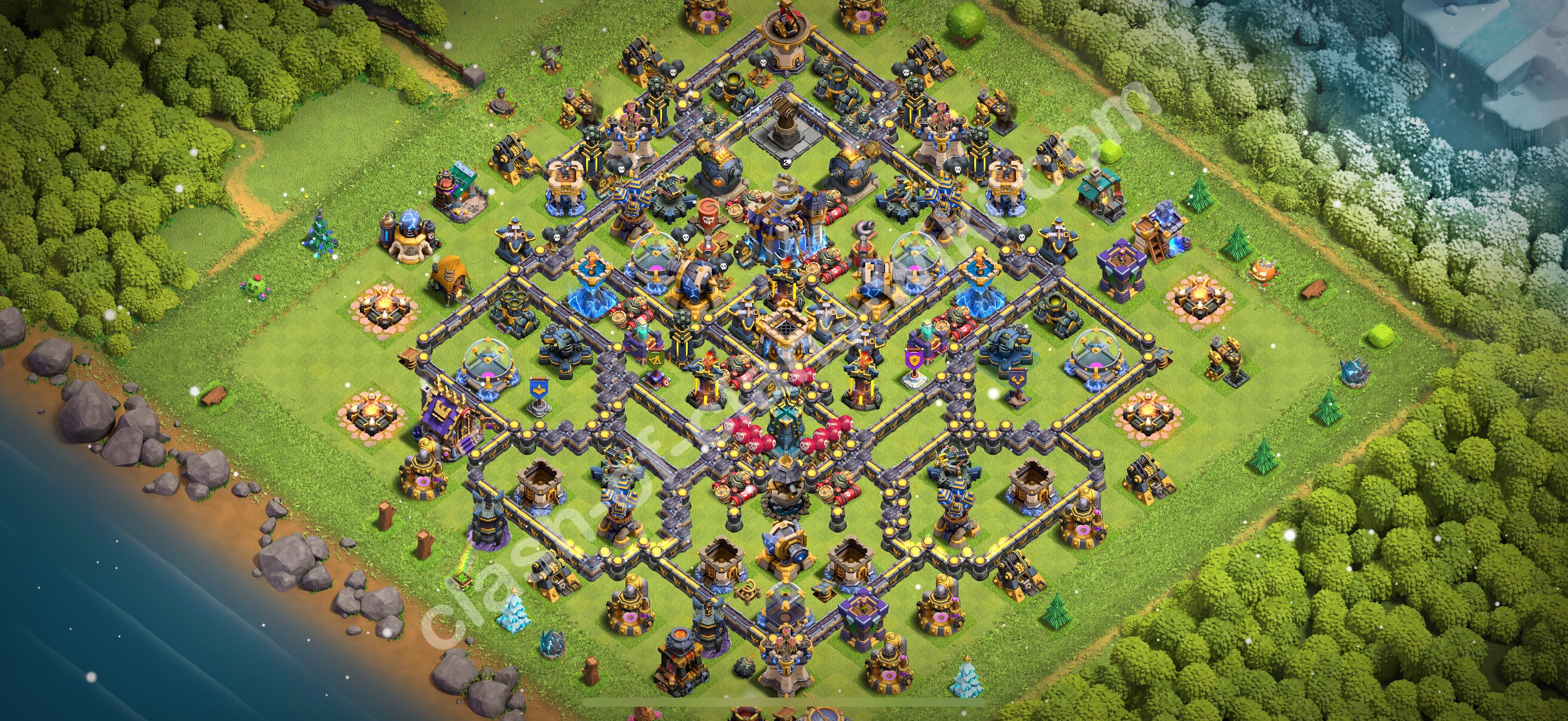 Efficient base plan (layout / design) variant for defense (to collect trophies) Town Hall 18 / TH 18.