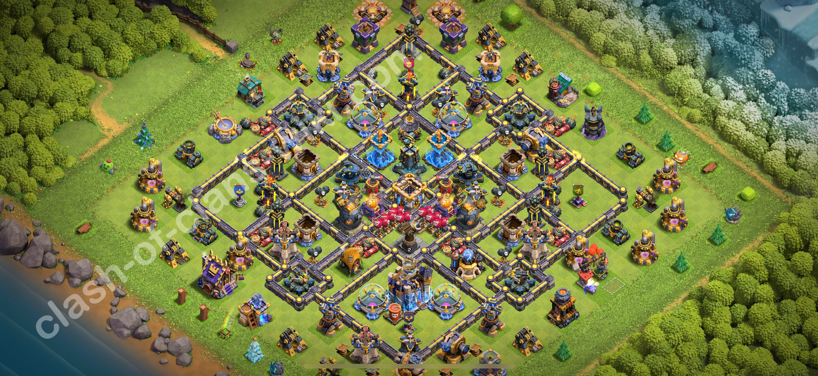 Efficient base plan (layout / design) variant for defense (to collect trophies) Town Hall 18 / TH 18.