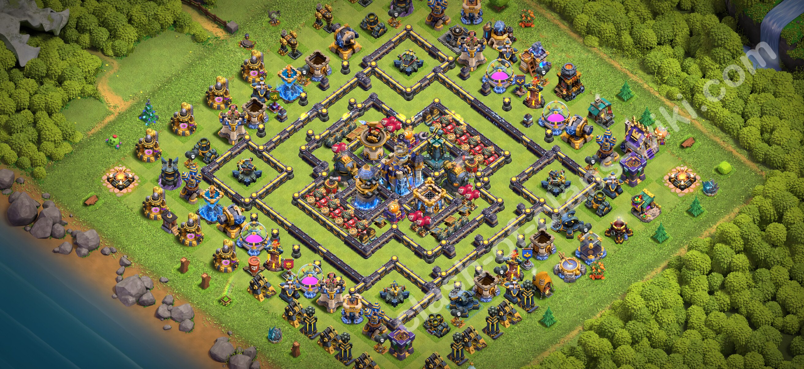 Efficient base plan (layout / design) variant for defense (to collect trophies) Town Hall 18 / TH 18.
