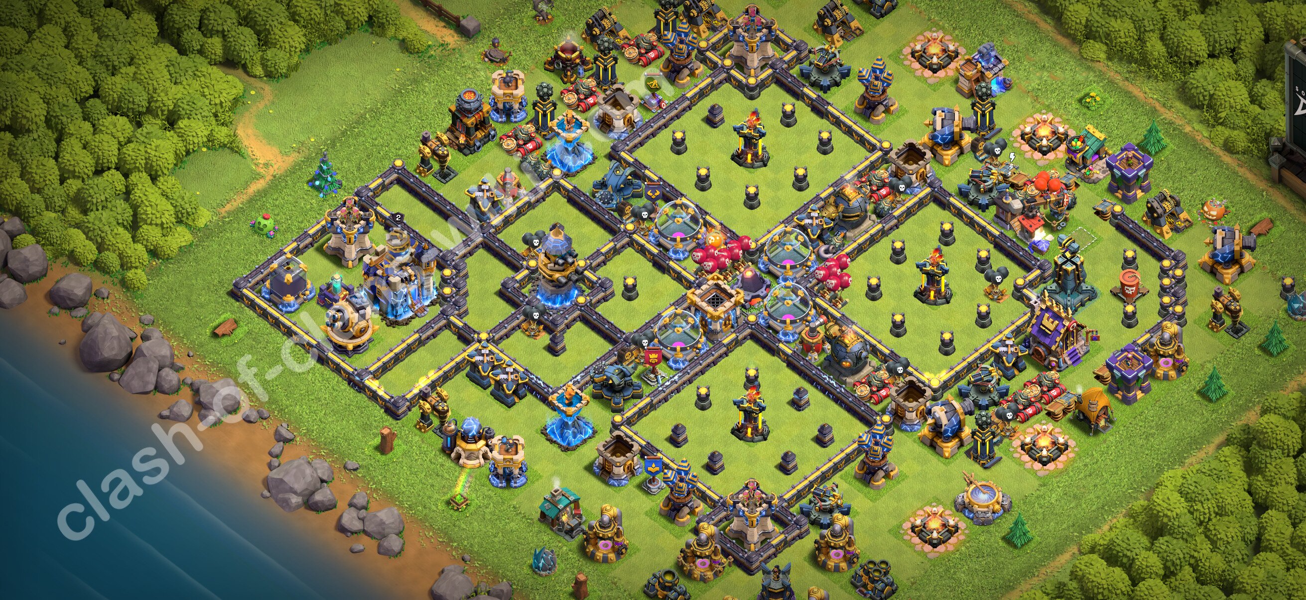 Efficient base plan (layout / design) variant for defense (to collect trophies) Town Hall 18 / TH 18.