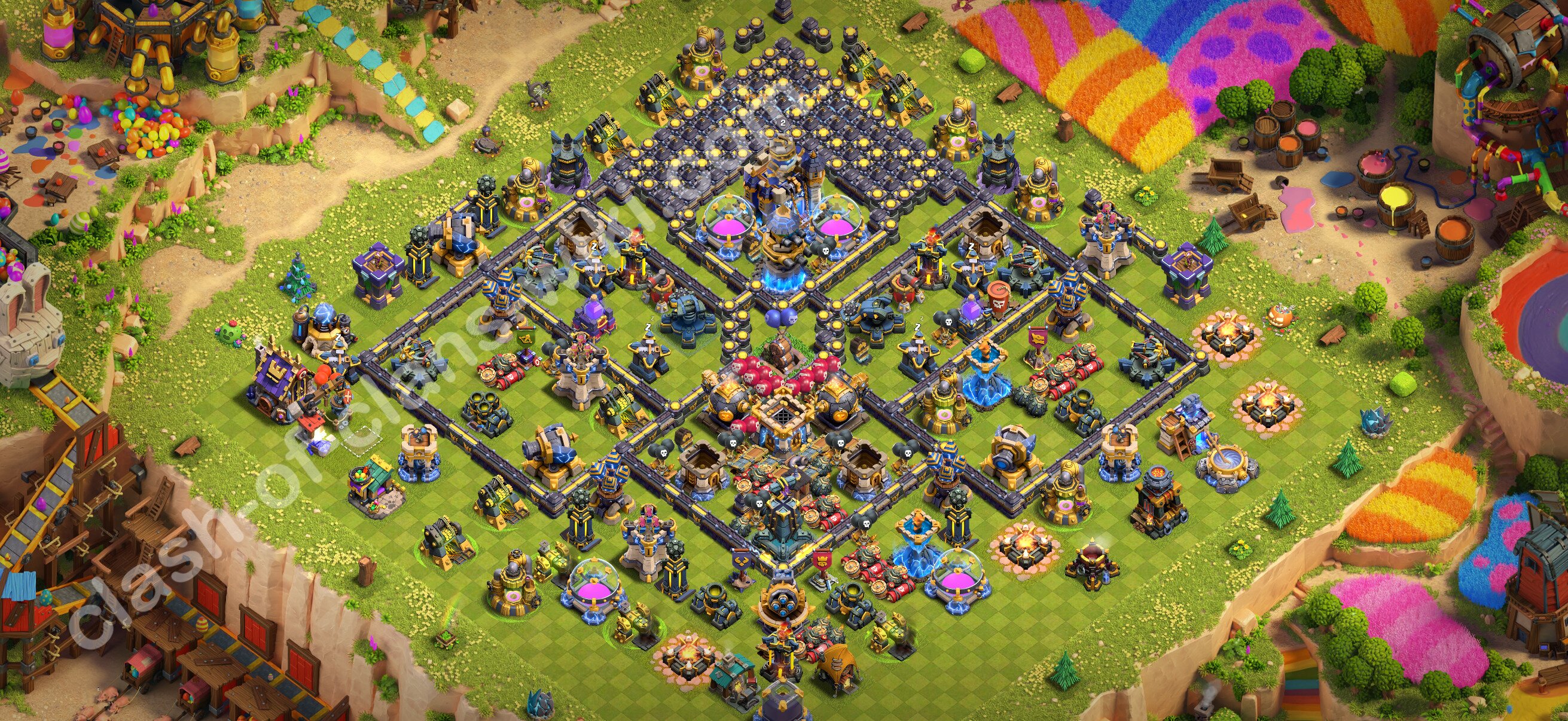 Efficient base plan (layout / design) variant for defense (to collect trophies) Town Hall 18 / TH 18.