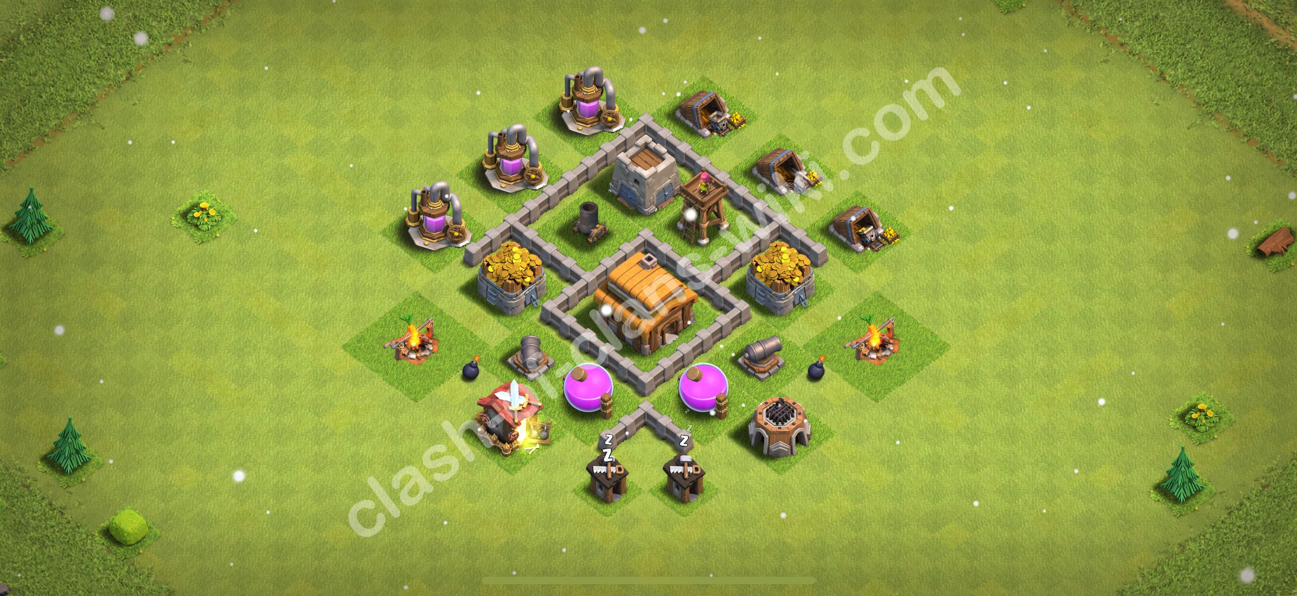 Efficient base plan (layout / design) variant for defense (to collect trophies) Town Hall 3 / TH 3.