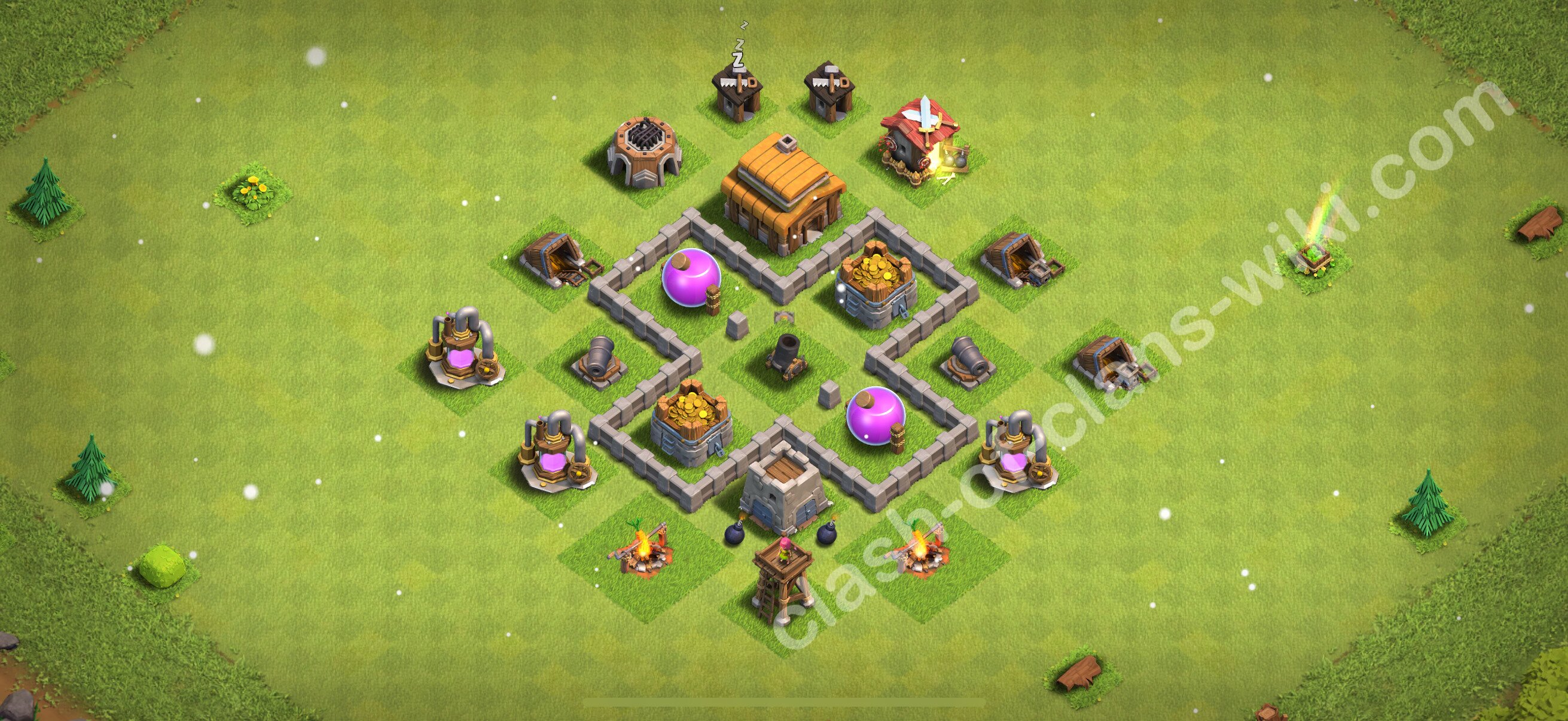 Efficient base plan (layout / design) variant for farming (resource collection) Town Hall 3 / TH3.