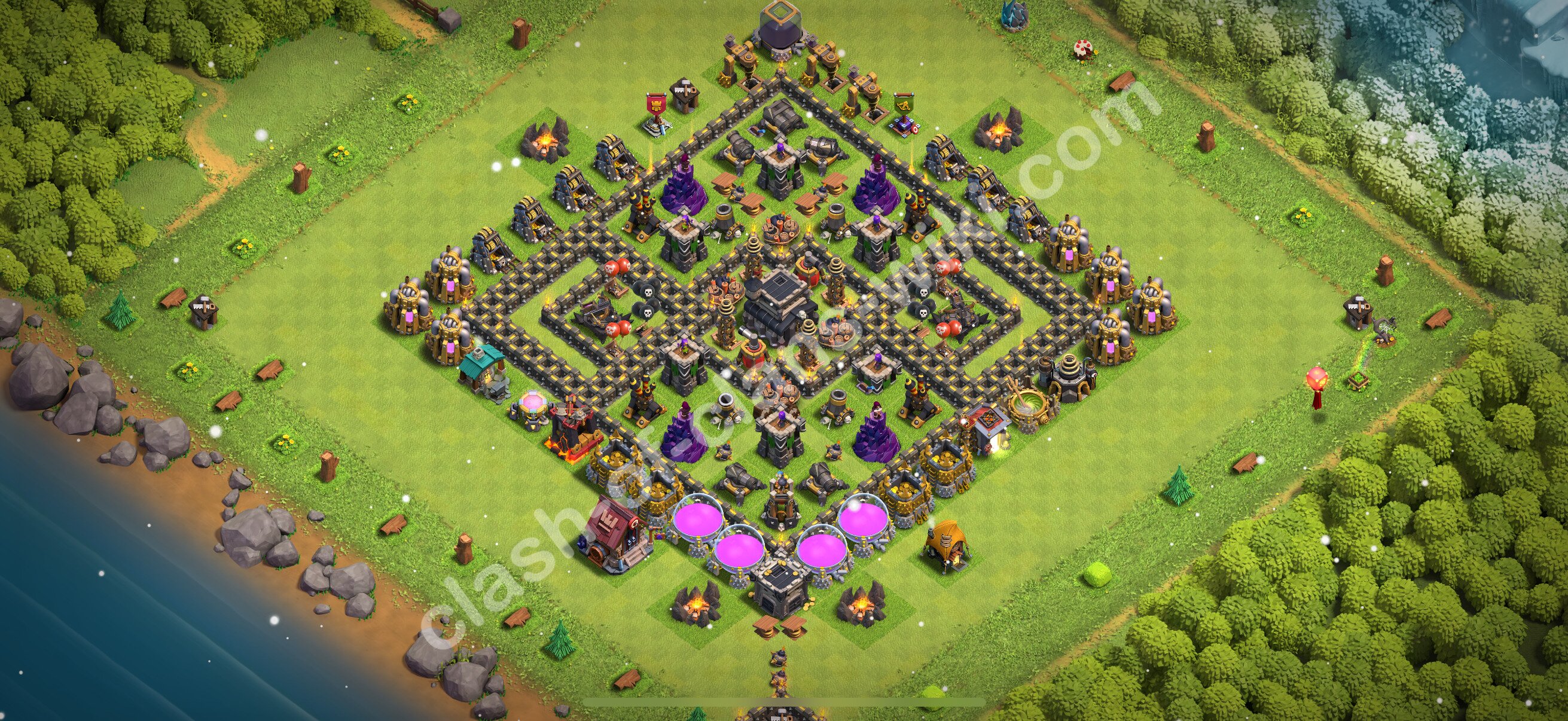 Defense (Trophy) Base TH9 with Link - plan / layout / design - Clash of Clans 2026, #1640