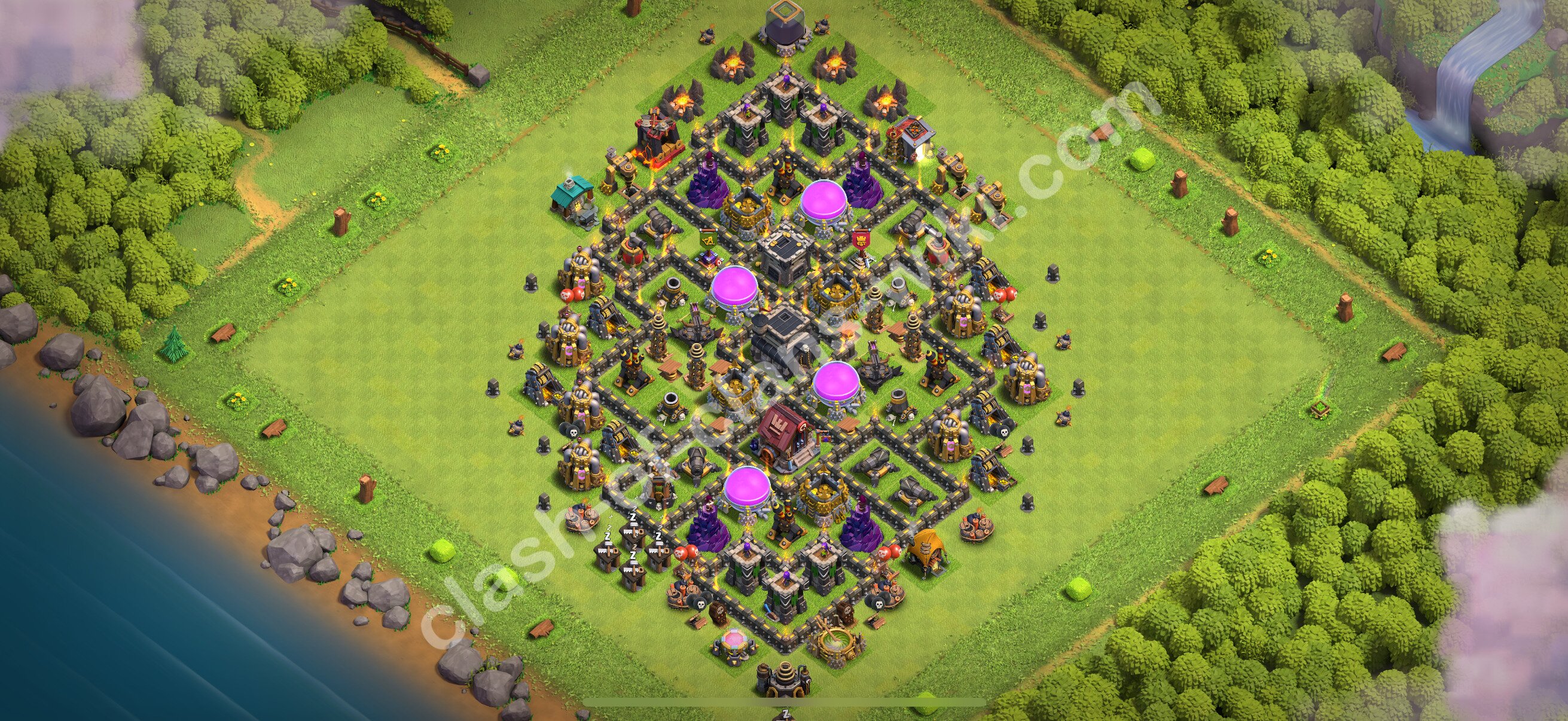 Defense (Trophy) Base TH9 with Link - plan / layout / design - Clash of Clans 2026, #3198